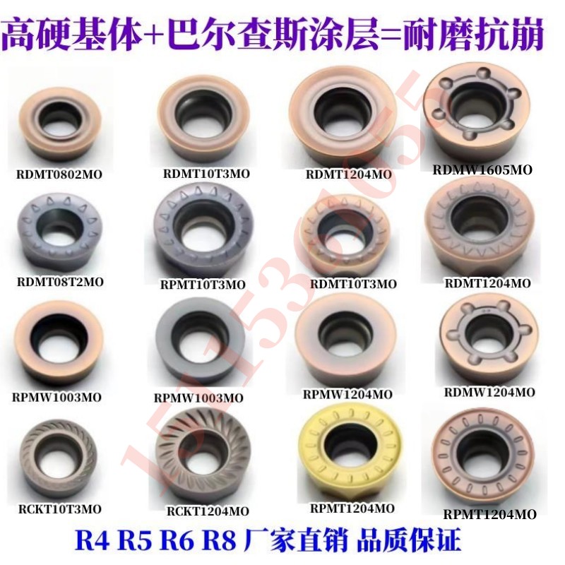 株洲湘冶數(shù)控圓弧銑刀片RDMT、RCKT和RDMW 1204 R4/R5/R6/R8是常用的刀片規(guī)格,適用于數(shù)控銑削加工。它們具有以下特點(diǎn):
